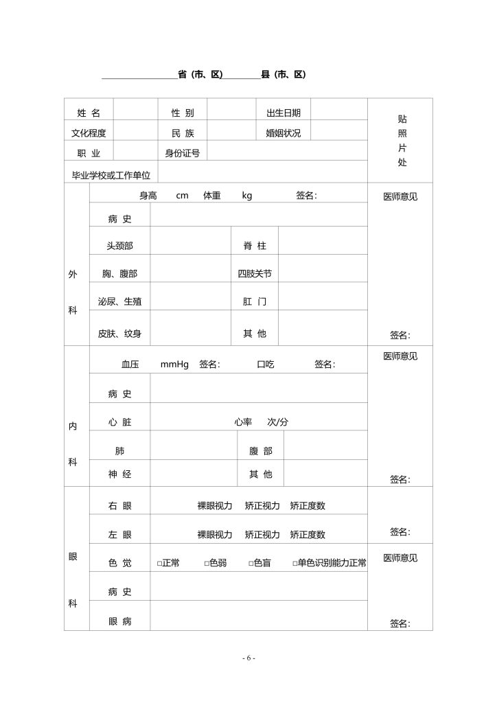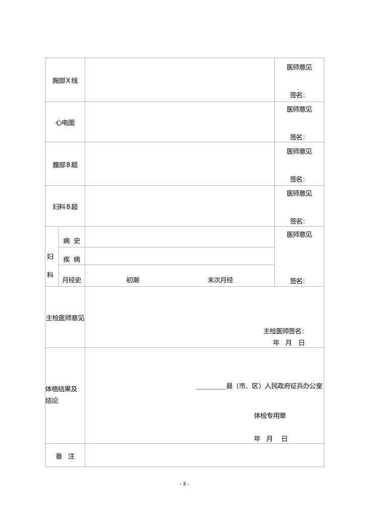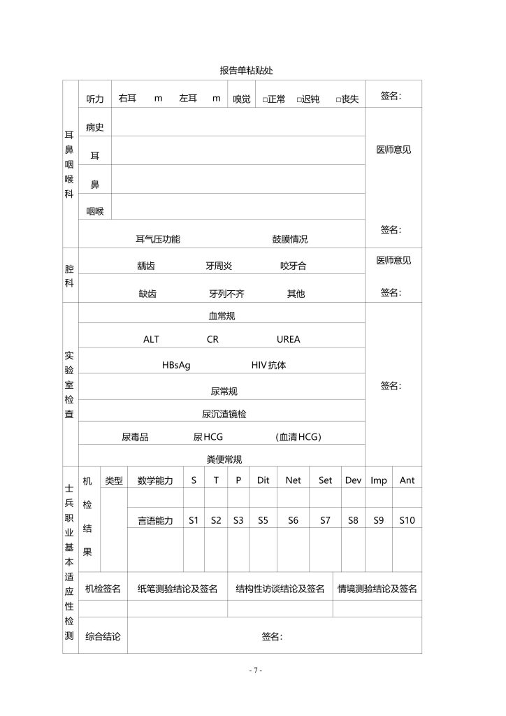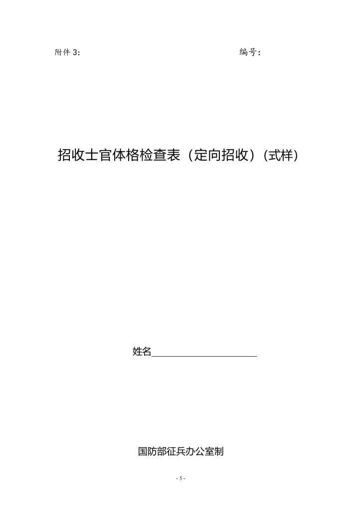 招收士官体格检查表(体检表)
