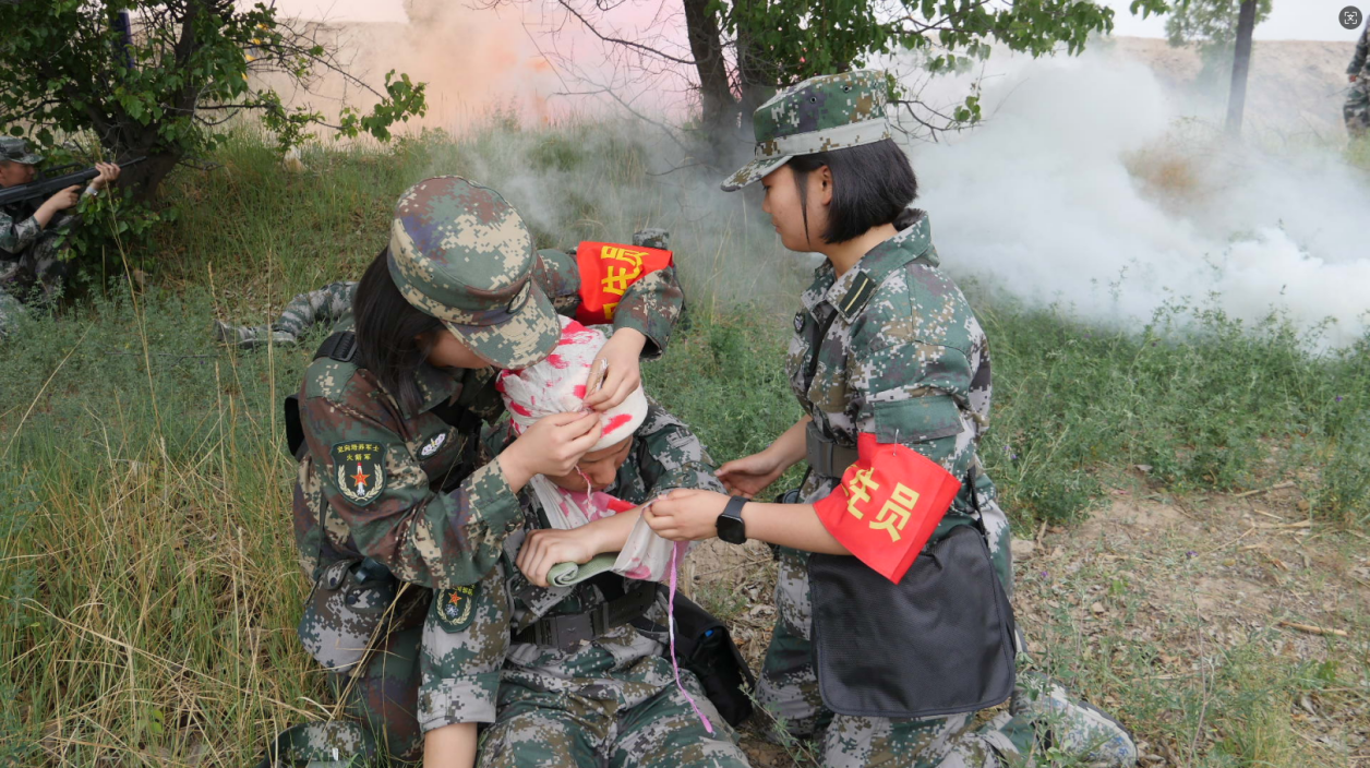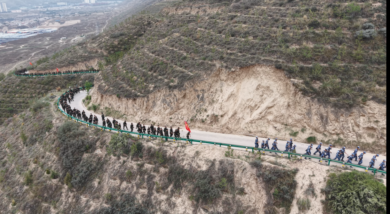 “旗在翻飞,梦已合围,胆略再穿插,军人的血性在冲锋号中锻打……”军士们一路高歌,一路前行,像一条迷彩长龙穿行在陇原山脊,发现敌特分子敢打必胜,遇空袭迅速疏散隐蔽,安全通过染毒地带,战场分秒必争抢救生命,3公里奔袭按时到达指定区域,全面锤炼了军事素质,磨砺了勇往直前的战斗精神。行进中彼此激励、携手共进,用”轻伤不下火线,汗水浇铸荣光”的嘹亮呼号振奋士气。他们意气风发、豪情满怀,以蓬勃朝气和昂扬姿态充分彰显了资环学子的青春风采。