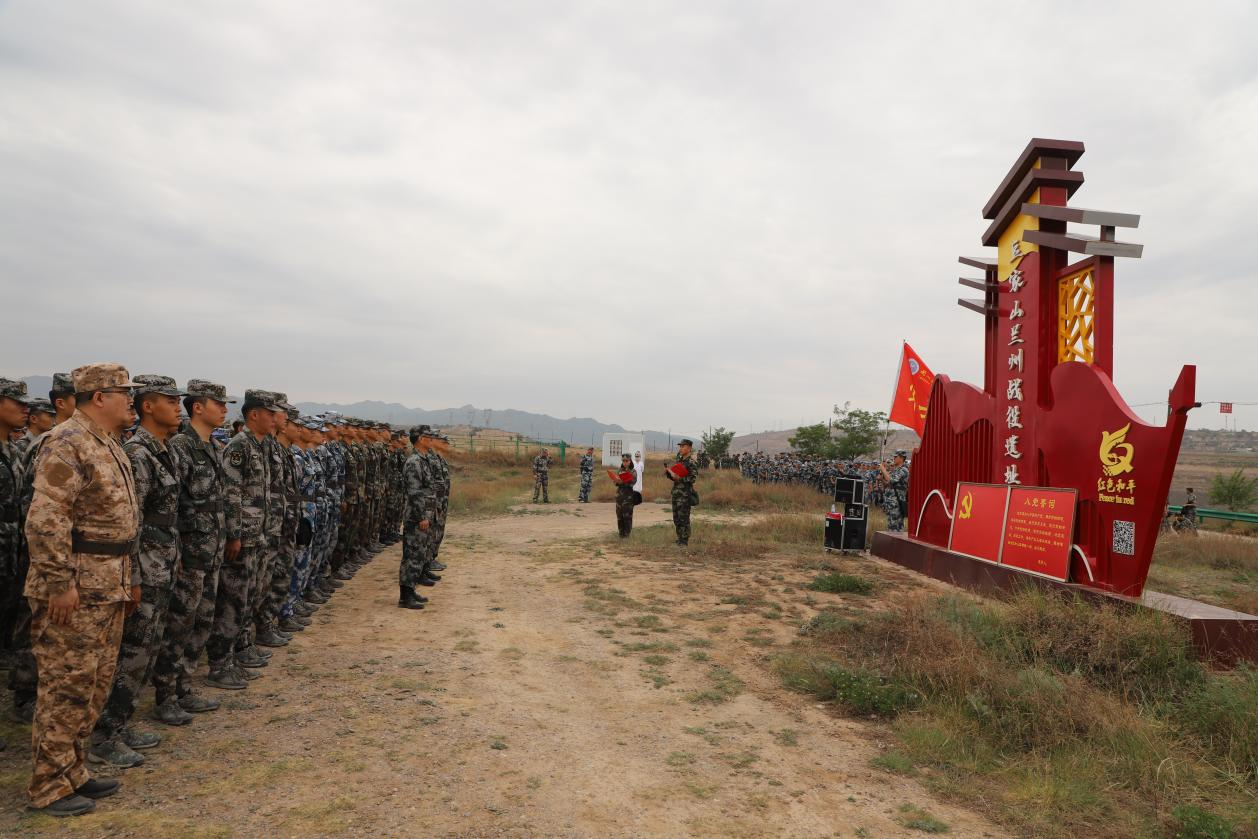 拉练队伍在途经解放战争兰州战役豆家山村战场遗址时,开展了《讲好革命故事追寻英雄足迹》主题党日活动,师生们一同聆听了豆家山村战役中革命先烈浴血奋战、英勇牺牲的光辉事迹,重温入党誓词。